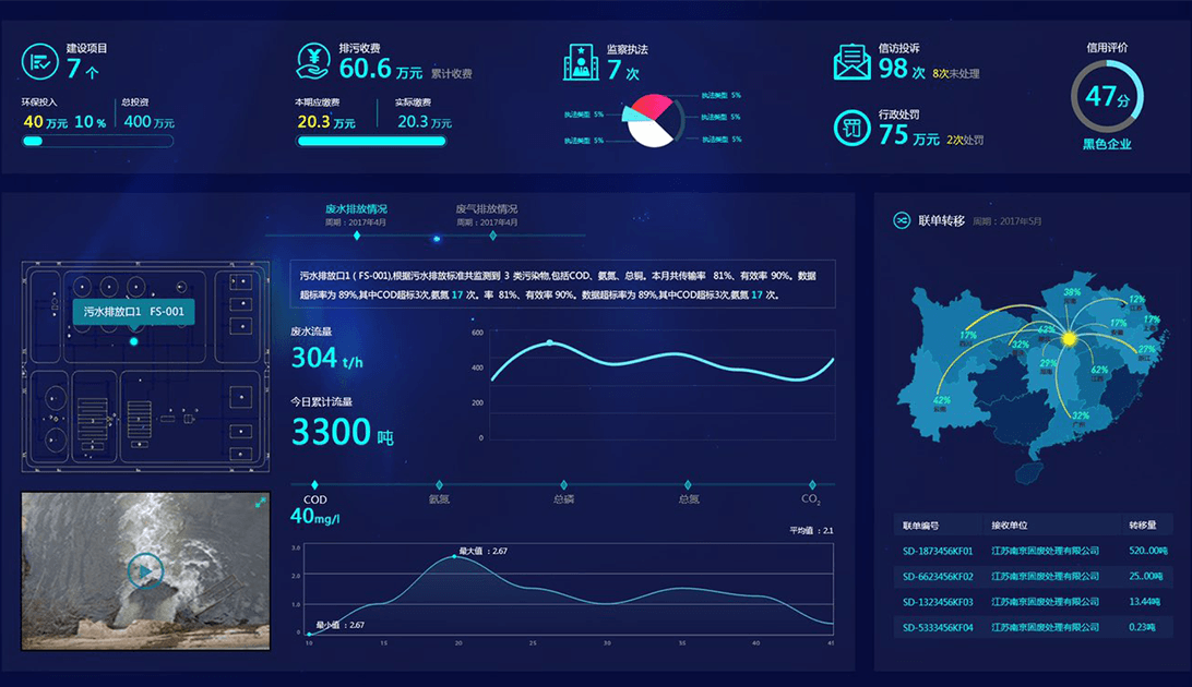 核心價值:1. 模擬運行期間針對風險企業預警有效率達93% 2. 對產廢、處廢企業進行評價定級,規范產廢、處廢企業申報行為 3. 為無害化處理提供決策經驗