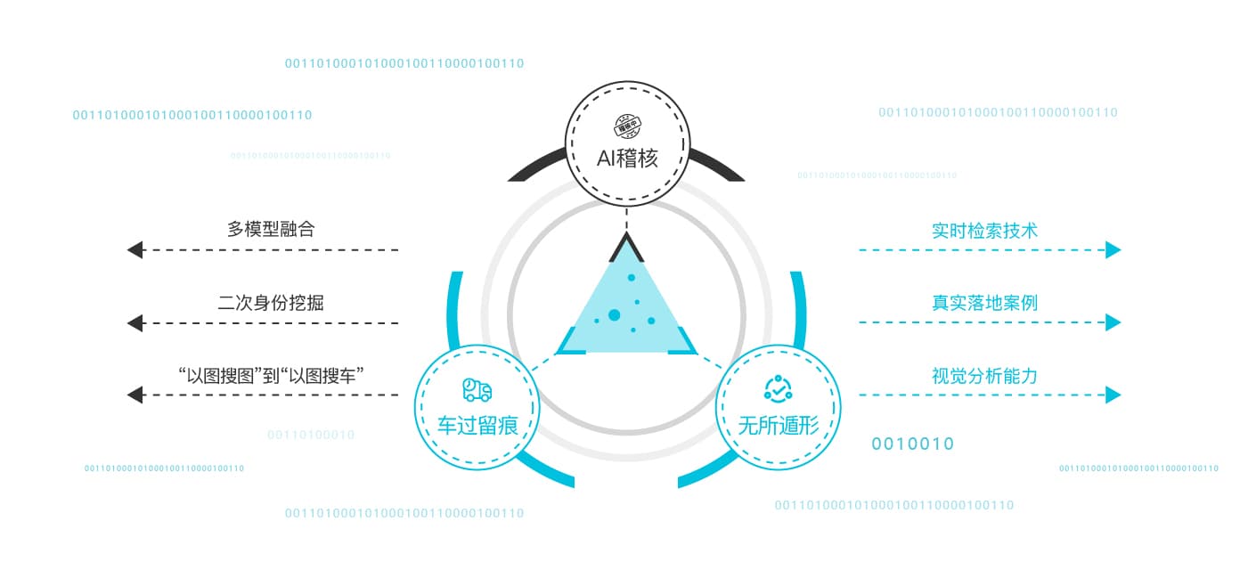 通過視頻結(jié)構(gòu)化,多模型融合和二次身份挖掘,“以圖搜車”,百億級超大規(guī)模圖像實(shí)時檢索技術(shù),關(guān)鍵視覺算法全自研,豐富的場景化,逐層遞進(jìn),實(shí)現(xiàn)車輛的無死角分析查詢。