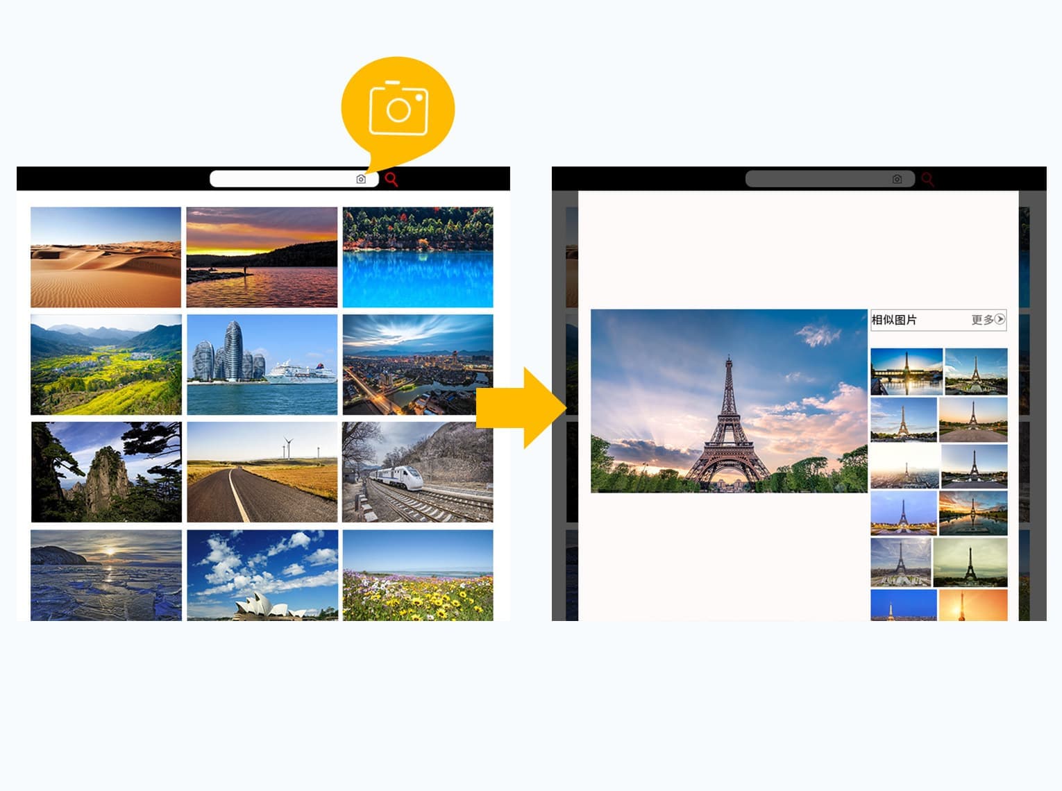 圖片分享和社交類網站通常有大量圖片供用戶搜索使用,利用圖像搜索服務,可快速實現用戶的以圖搜圖需求。