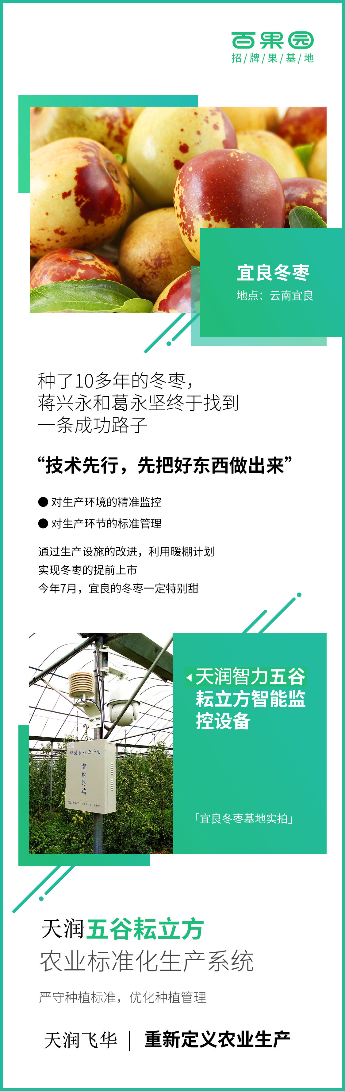 2018年,宜良冬棗基地引入天潤智力“五谷耘立方標準化生產管理系統”,輔助專家進行標準化種植管理。
