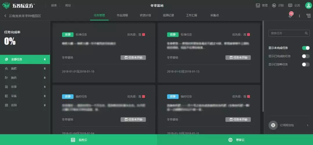 為冬棗基地建立標準流程以后,冬棗的每一次控樹、澆水、施肥,甚至不定期的巡園等農事任務都由系統自動下發,工作人員的完成情況也能通過拍照、文字的方式在系統里一鍵匯報,農事完成情況在系統平臺直觀體現,冬棗的種植生產活動不再是“單獨行動”,而是透明化、標準化的“工業式作業流程”,大大避免了人為的不確定性,以及因疏忽導致的管理不到位等情況。長期駐扎在冬棗基地的優果聯葛永堅說道:“有了系統實時的任務送達提醒,我們的效率提高了不少!”