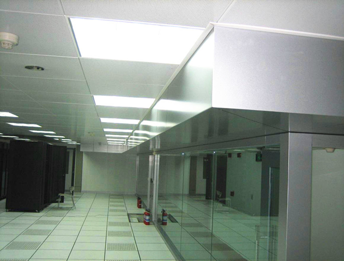 (機房中的隔斷多采用方鋼+鋁塑板邊框&12mm厚鋼化防火玻璃。防火玻璃。它具有隔音、隔熱、耐壓等特點,透視效果極佳,并增添機房的簡練)