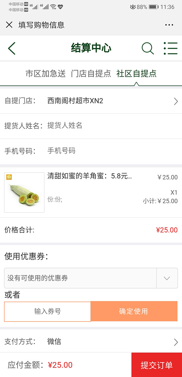 結算中心,有物流配送、門店自提、社區自提點(團長)三種類型