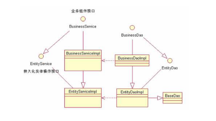 業務邏輯層采用了接口的技術,使得具體的業務邏輯實現代碼和接口進行解耦,而前端的Action只需要通過一個定位器,就可以獲得具體的接口進行調用。