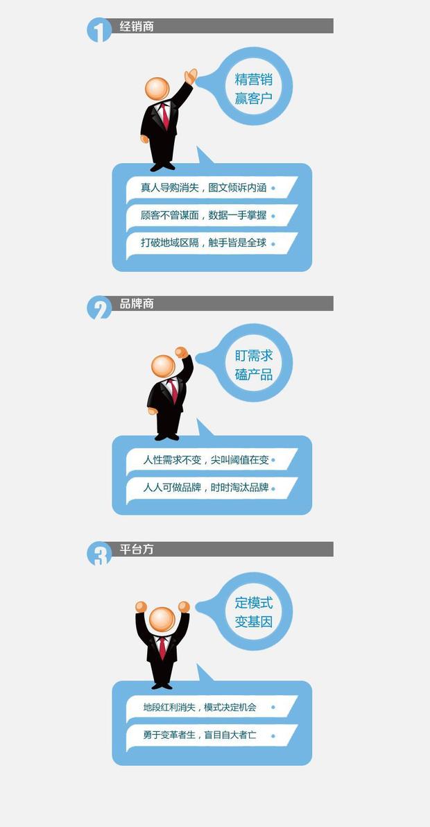 一般而言,如果品牌廠商在電商時代做直營成本依然過高,則還會借助經銷商模式實現共贏共生。尤其是倚重配套服務的行業(例如家居家裝、大家電、餐飲等),遍布各地的中小經銷商依然有生存空間。需要積極轉變思維,配合品牌商的電商時代戰略舉措,發揮自己的角色能量。