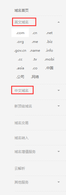 點擊 進入到域名種類查詢界面。