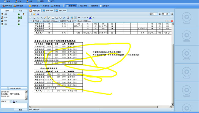 9、電子白板,使用第三方中間件(msoffice),可以打開本地文件或服務(wù)器上的文件進(jìn)行閱覽,在會(huì)議期間參會(huì)者可以選擇廣播式和非廣播式,廣播式需要鎖定其他參會(huì)者的顯示器,其他參會(huì)人員可以看到發(fā)廣播人進(jìn)行會(huì)議批注。