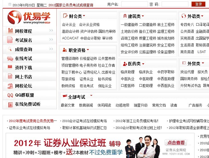 優易學(www.youyixue.com)網站創辦于2007年6月,在教育部基礎教育司相應中央提出的加強大學生思想文化道德建設的號召下成立,本著教育為己任,不斷開拓大學生的自身修養和文化水平,是目前國內最大的教育考試類網站之一,同時我們是中東部地區訪問量最大的教育類網站,為谷歌全球新聞中心一萬家合作伙伴之一,24小時不間斷為大家發布教育考試資訊…
