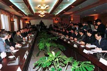 3月28日下午4時許,中國與歐盟就中國加入世界貿易組織的新一輪談判在外經貿部談判大樓舉行。圖為雙方談判現場。